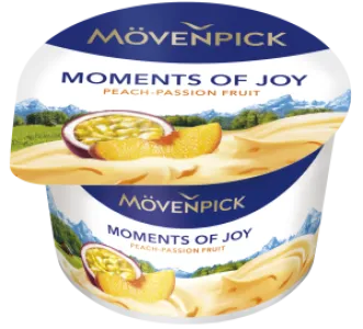 Finest Mövenpick yoghurt in the practically small 100g pot. Thanks to the high proportion of selected fruits and best fresh milk this yoghurt delight is particularly fruity & creamy. Mövenpick Moments of Joy are available in 5 different fruit flavours and don't contain any preservatives.