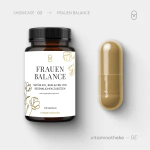 A daily companion for hormonal well-being and inner balance—Women’s Balance combines Ashwagandha, Shatavari, Dong Quai, VitB6, Biotin, Selenium and more to support skin, mood, cycle regulation, and hormonal comfort. Made in Germany, vegan, clean-label.