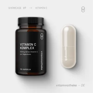 High-dose and buffered vitamin C combined with natural plant extracts like acerola, rose hip, camu camu, and citrus bioflavonoids. Gentle on the stomach, supports immune defense, collagen formation, and antioxidant protection.
